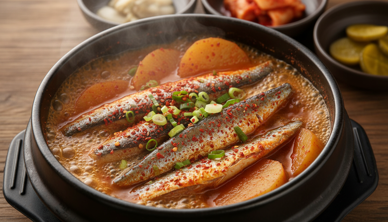 - 끓이기 시작: 센 불에서 한소끔 끓이다가 끓기 시작하면 중불로 줄여 뚜껑을 덮고 무가 부드러워질 때까지 20분 정도 끓여줍니다. 중간중간 국물을 끼얹어 갈치에 양념이 잘 배도록 해주세요.