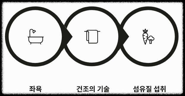 - 좌욕 생활화: 38~40도의 미온수로 3~5분간 좌욕을 하면 혈액순환을 돕고 항문을 이완시킵니다.